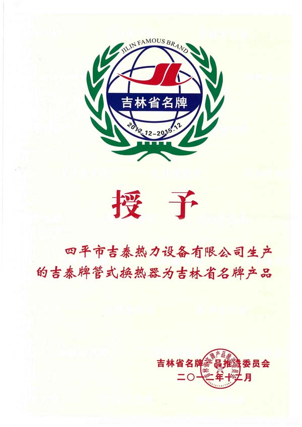 四平市吉泰熱力設(shè)備有限公司始建于1996年,坐落在全國衛(wèi)生園林城市,擁有“中國換熱器基地”美譽(yù)的四平市,公司擁有雄厚的技術(shù)力量和人才優(yōu)勢,國內(nèi)生產(chǎn)設(shè)備,完善的檢測手段,是吉林省集設(shè)計(jì)、開發(fā)、生產(chǎn)經(jīng)營于一體的換熱設(shè)備生產(chǎn)企業(yè)。